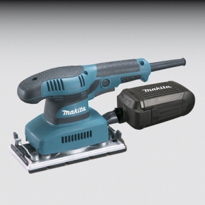 Bequemer Papierwechsel über Spannhebel Verstärkte Aluminium-Grundplatte Anti-Vibrations-System für ermüdungsfreies Arbeiten Staubabsaugung durch die Grundplatte Lieferumfang: Staubbox Filtersack Schleifpapier-Set